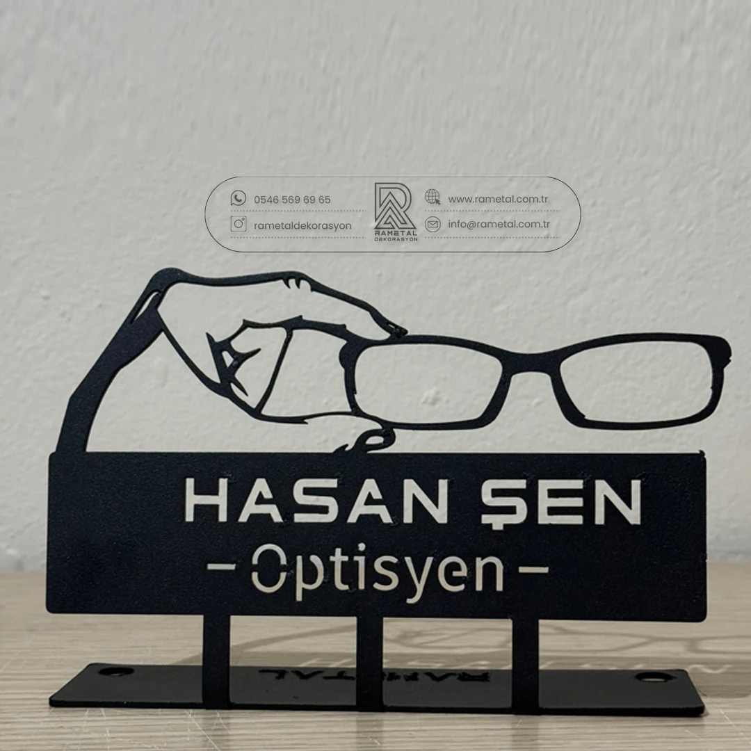Optisyen Optik Masa İsimliği ve Kalemlik - Kişiye Özel Metal İsimlik